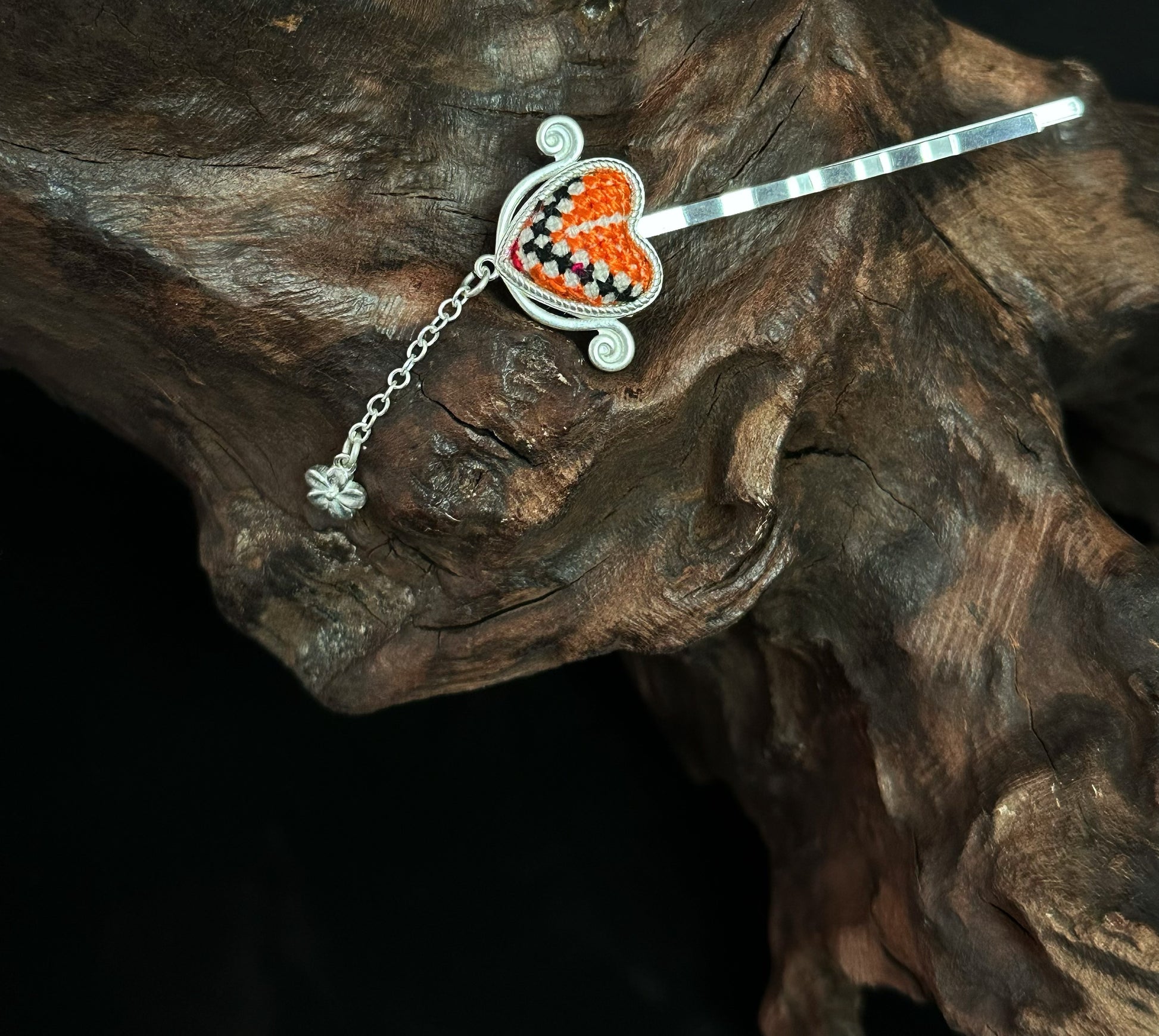 Material: Silver-Plated Copper, Embroidered Cotton Thread