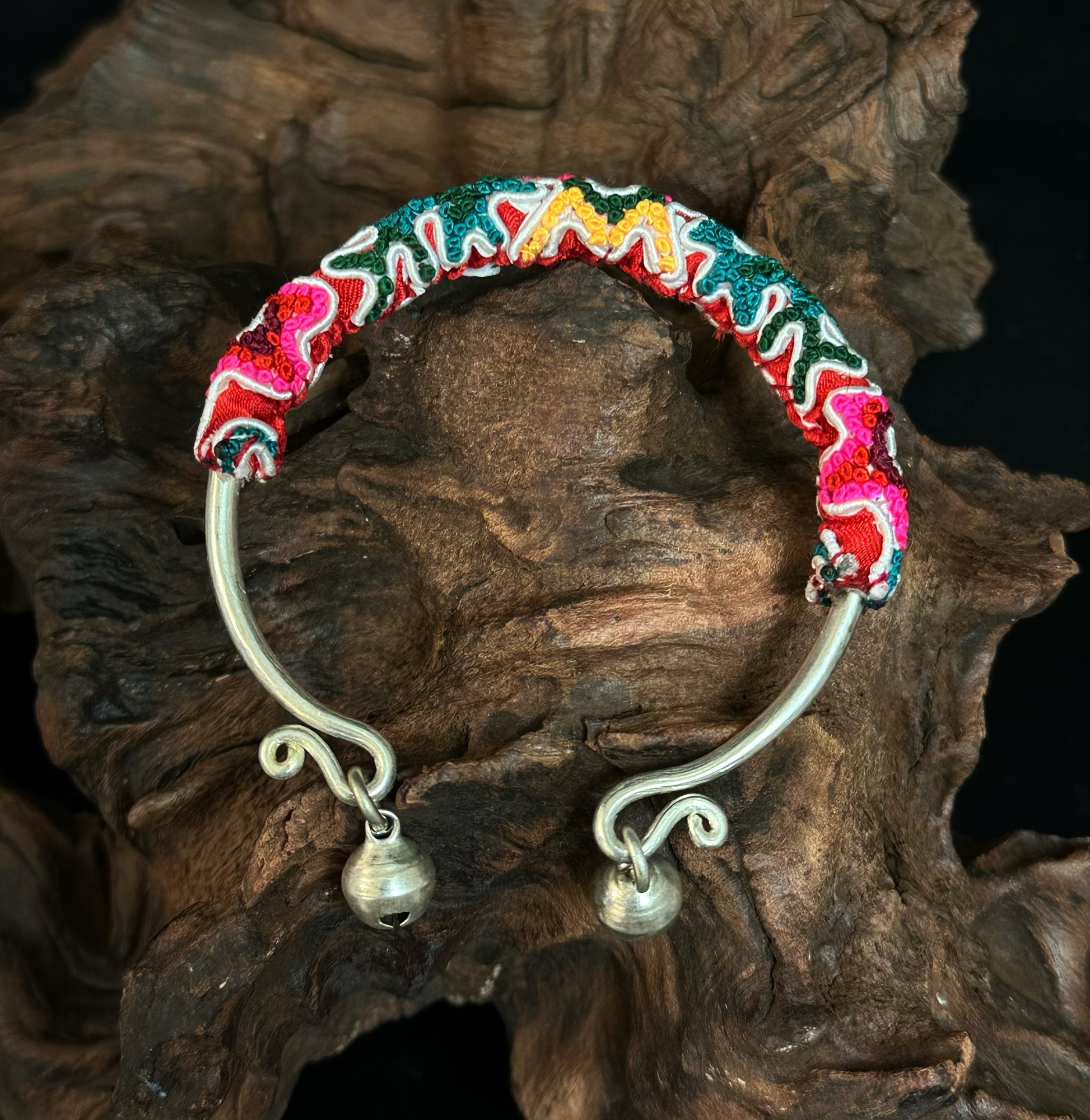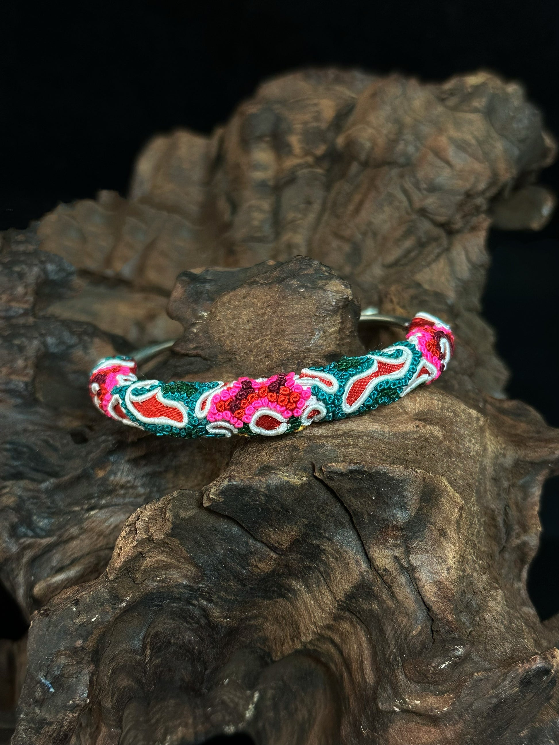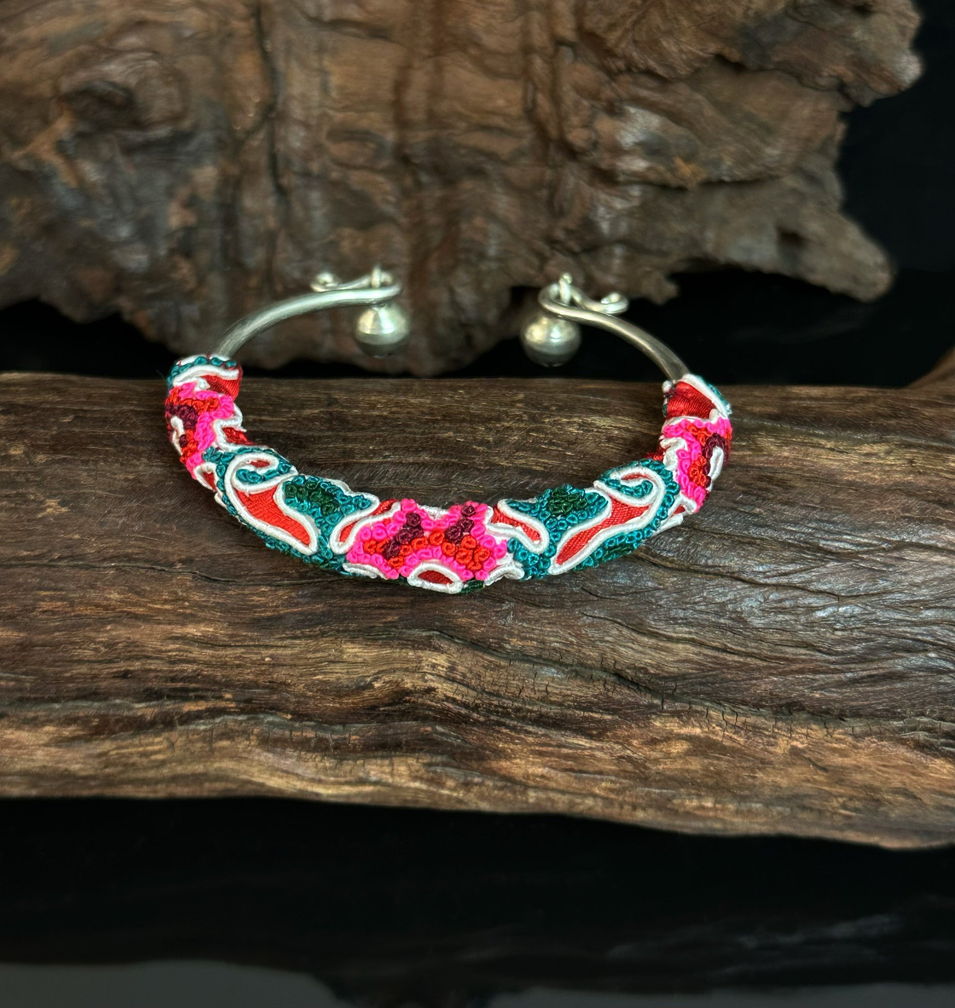 Wrap your wrist in quiet strength with the Spirit Shield — a hand-embroidered silver bangle infused with protection, energy, and ancestral wisdom.